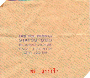 Status Quo a donné 12 concerts, en Yougoslavie (Serbie, Slovénie et Croatie). Les ventes de disques sont restées assez modestes puisque, seulement, 4 singles ont intégré le hit-parade yougoslave et que seul, 'Status Quo live' a été certifié disque d'argent, en 1977.